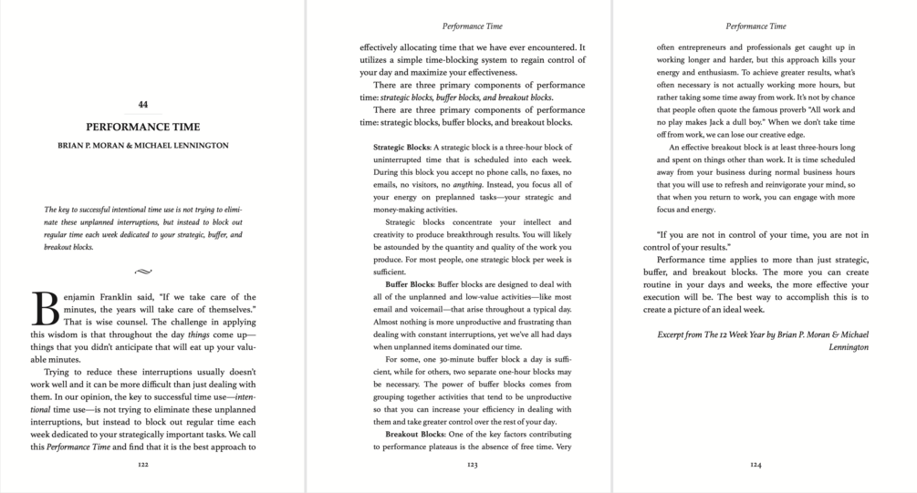 - PERFORMANCE TIME by Brian P. Moran & Michael Lennington